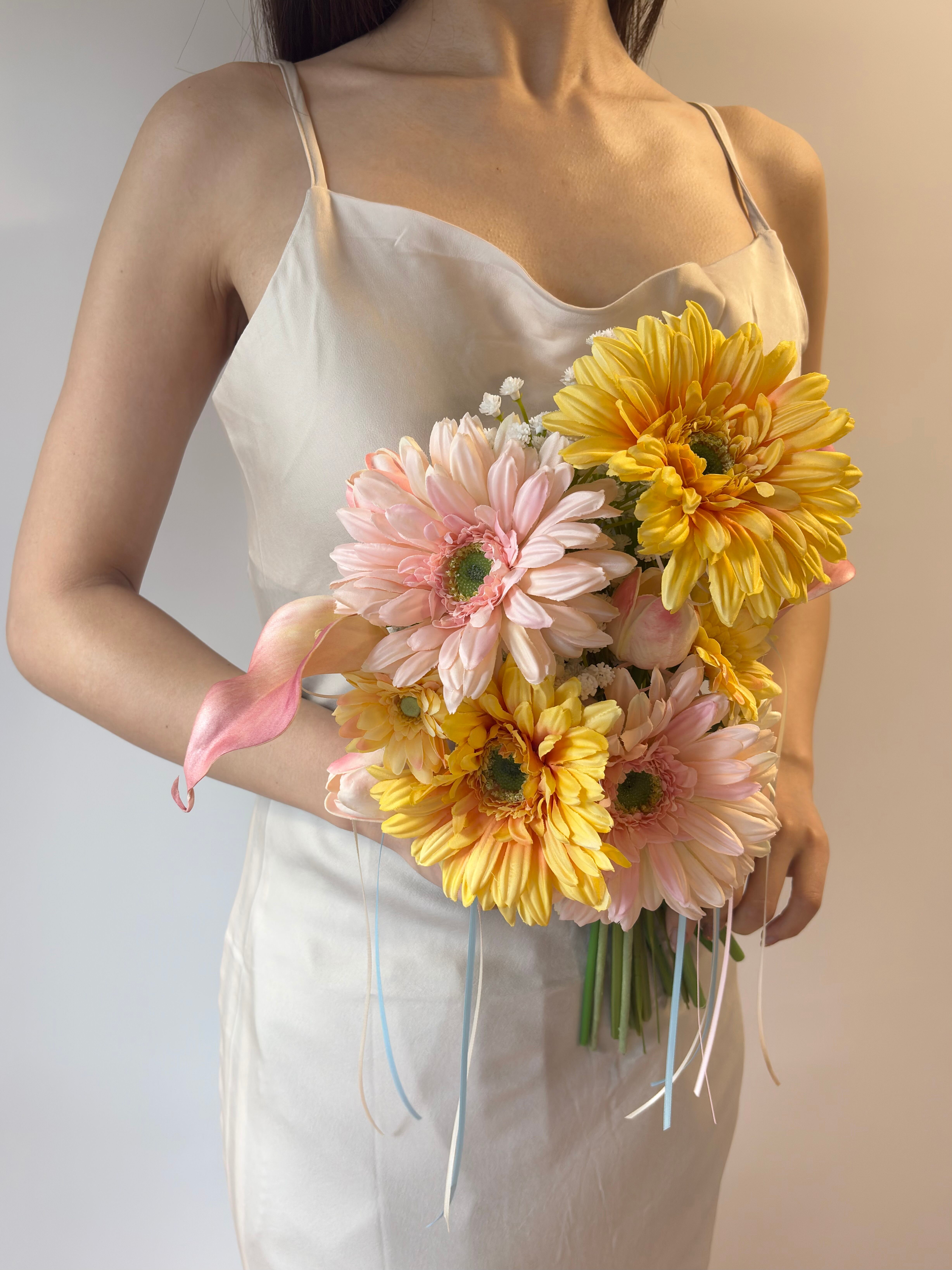 【ブートニア付】持つだけで明るい気持ちになれる|リボンを使用したウェディングブーケ|アーティシャルフラワー造花
