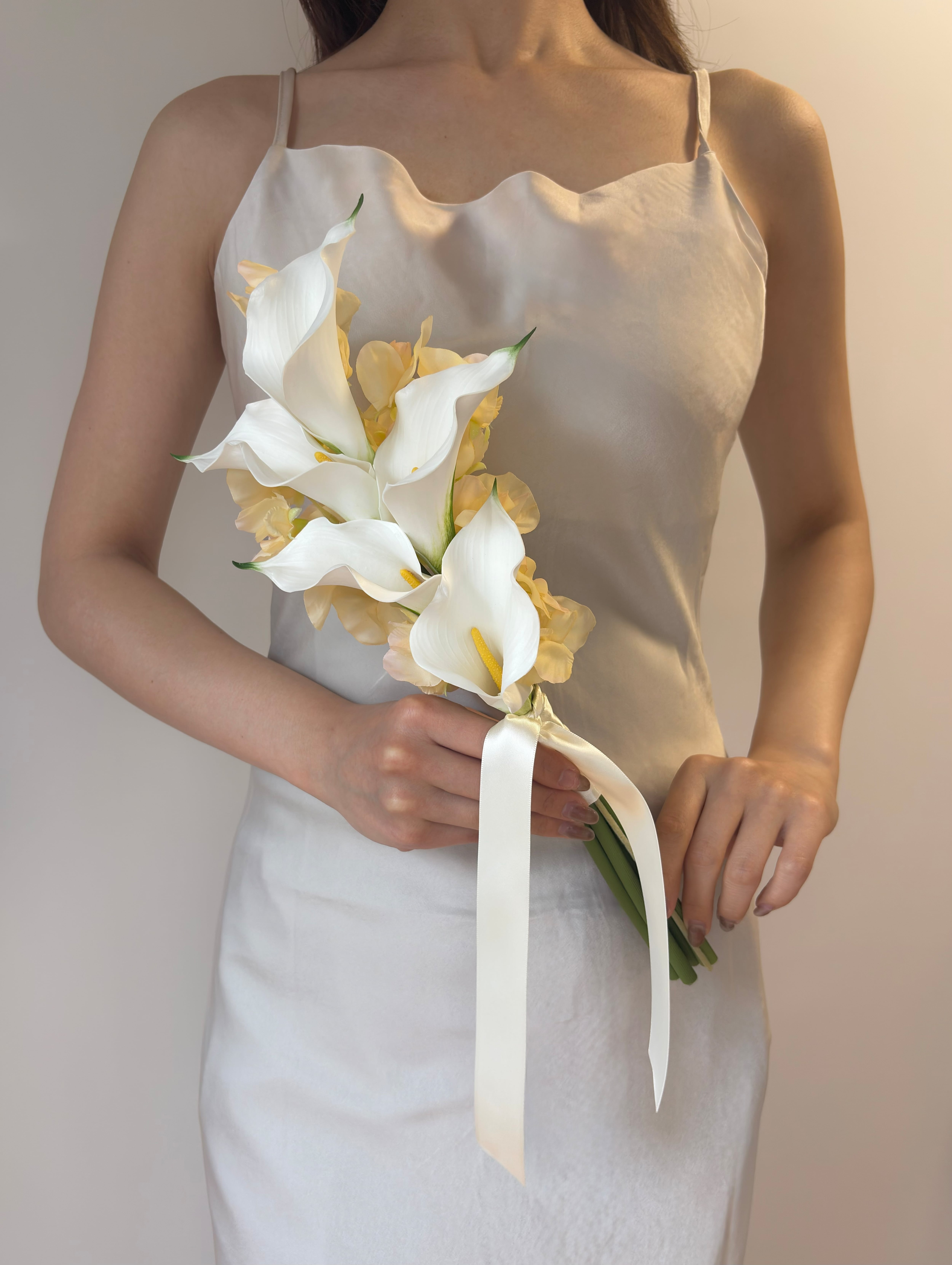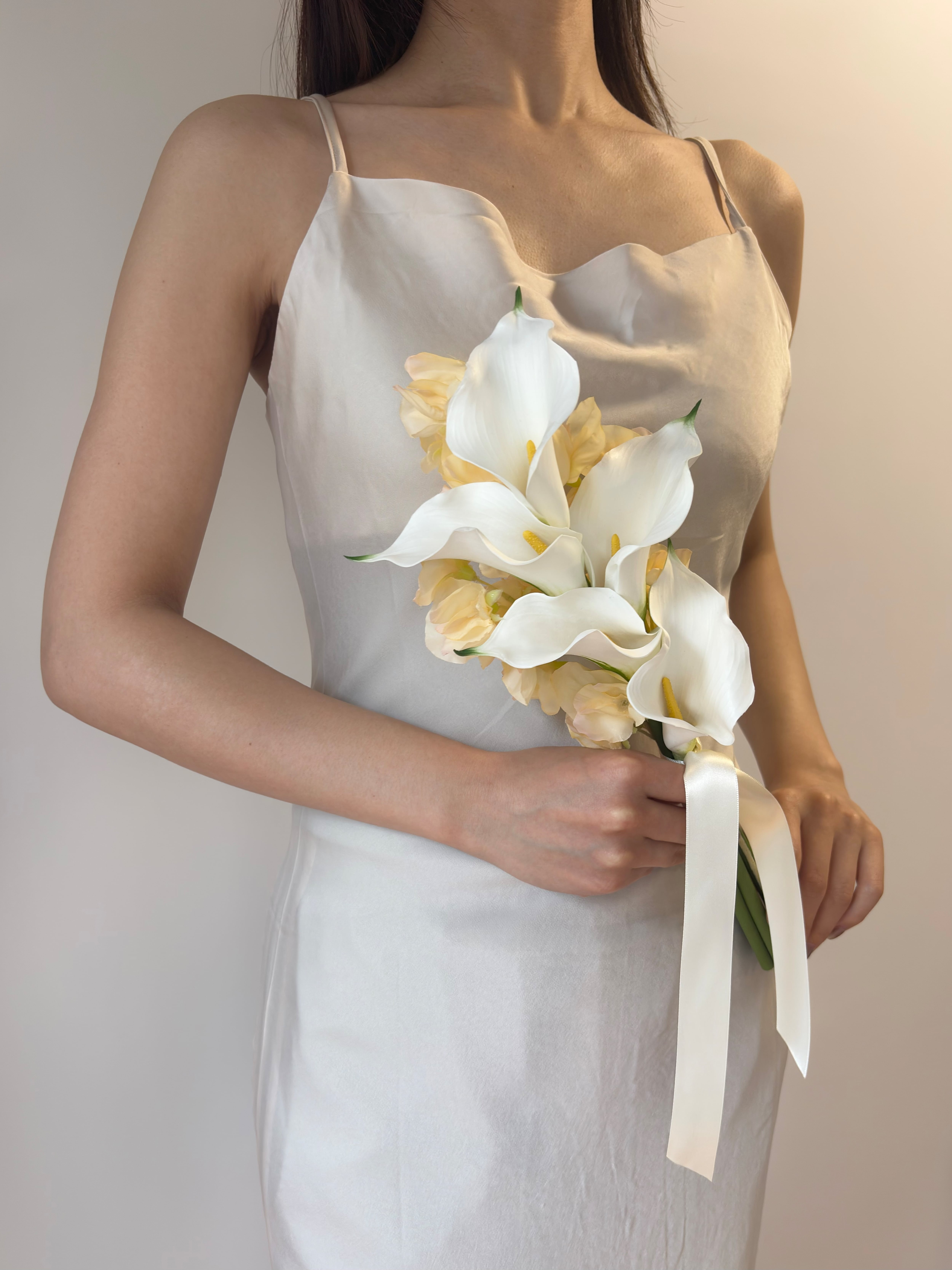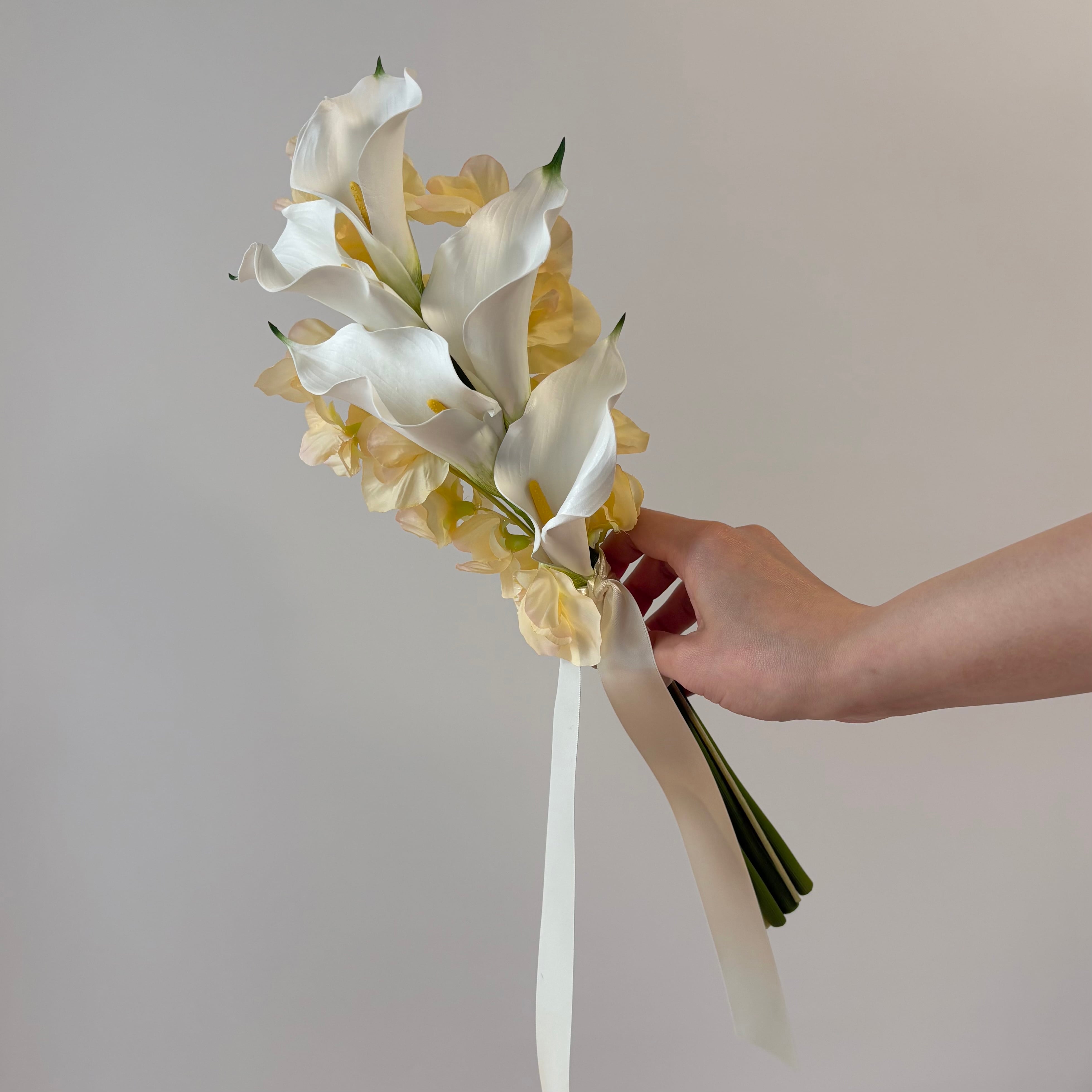 【ブートニア付】上品な余韻|ホワイト×クリームのナチュラルブーケ|アーティシャルフラワー造花