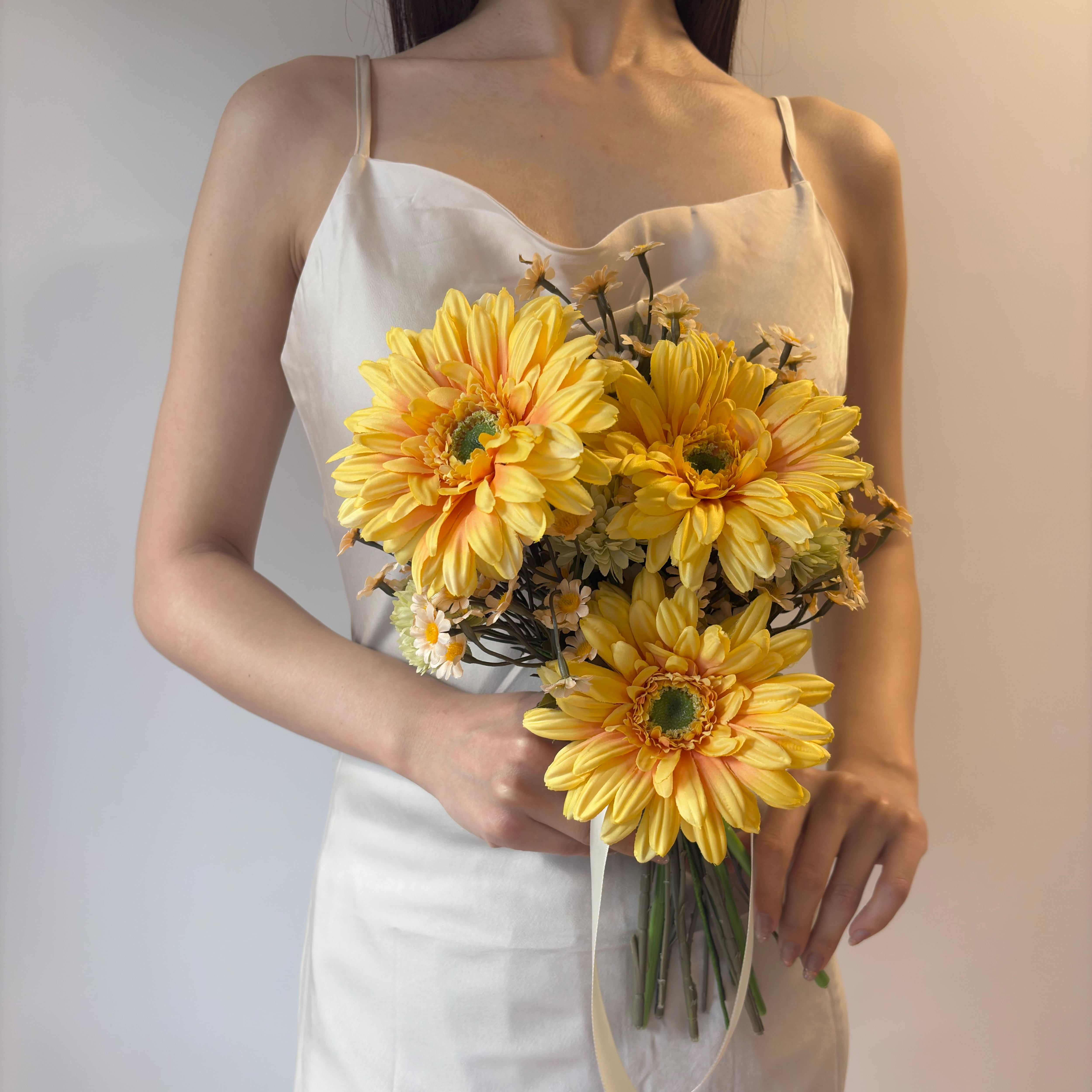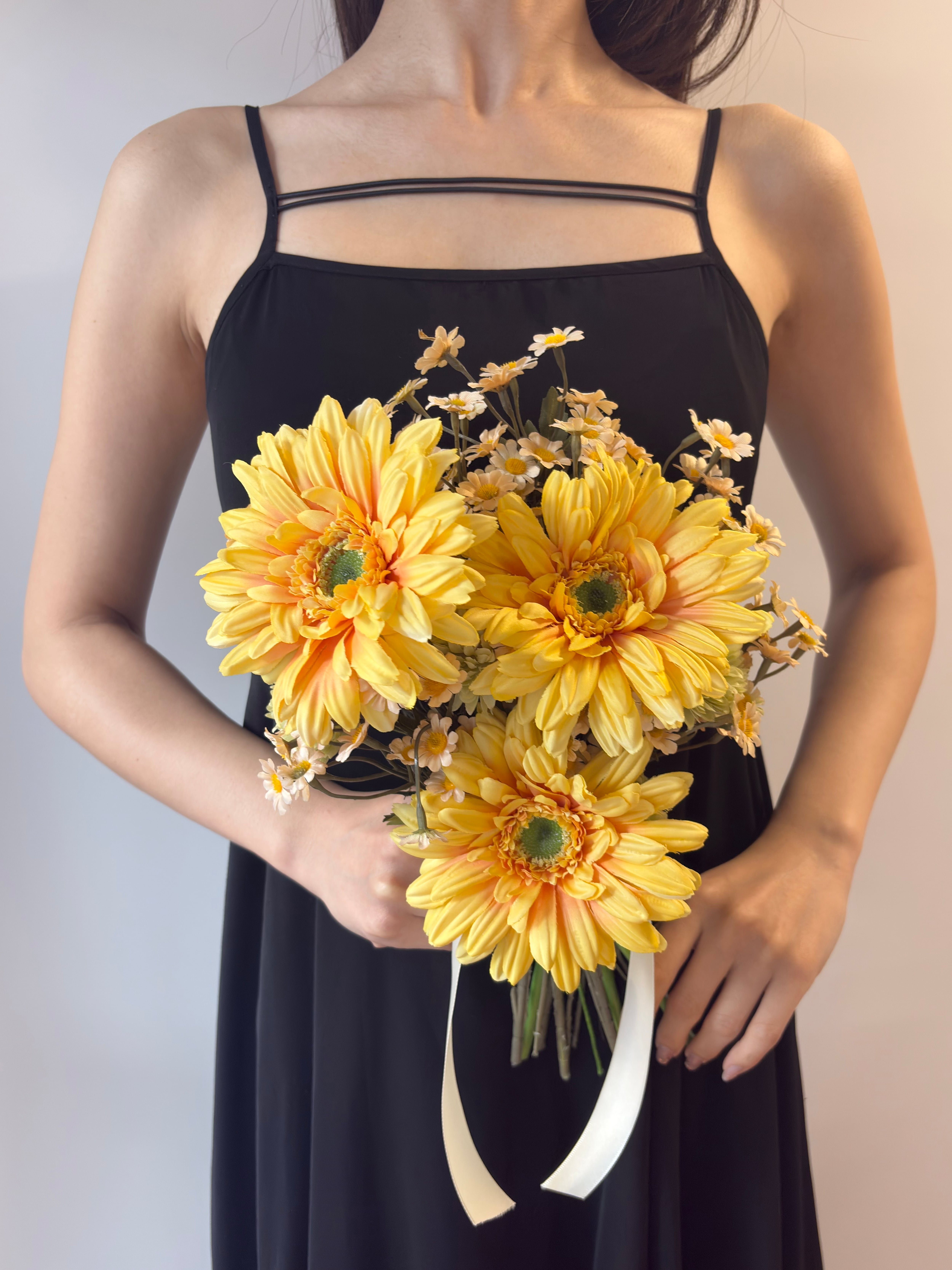【ブートニア付】元気がもらえる|イエロー×グリーンのナチュラルなクラッチブーケ|アーティシャルフラワー造花