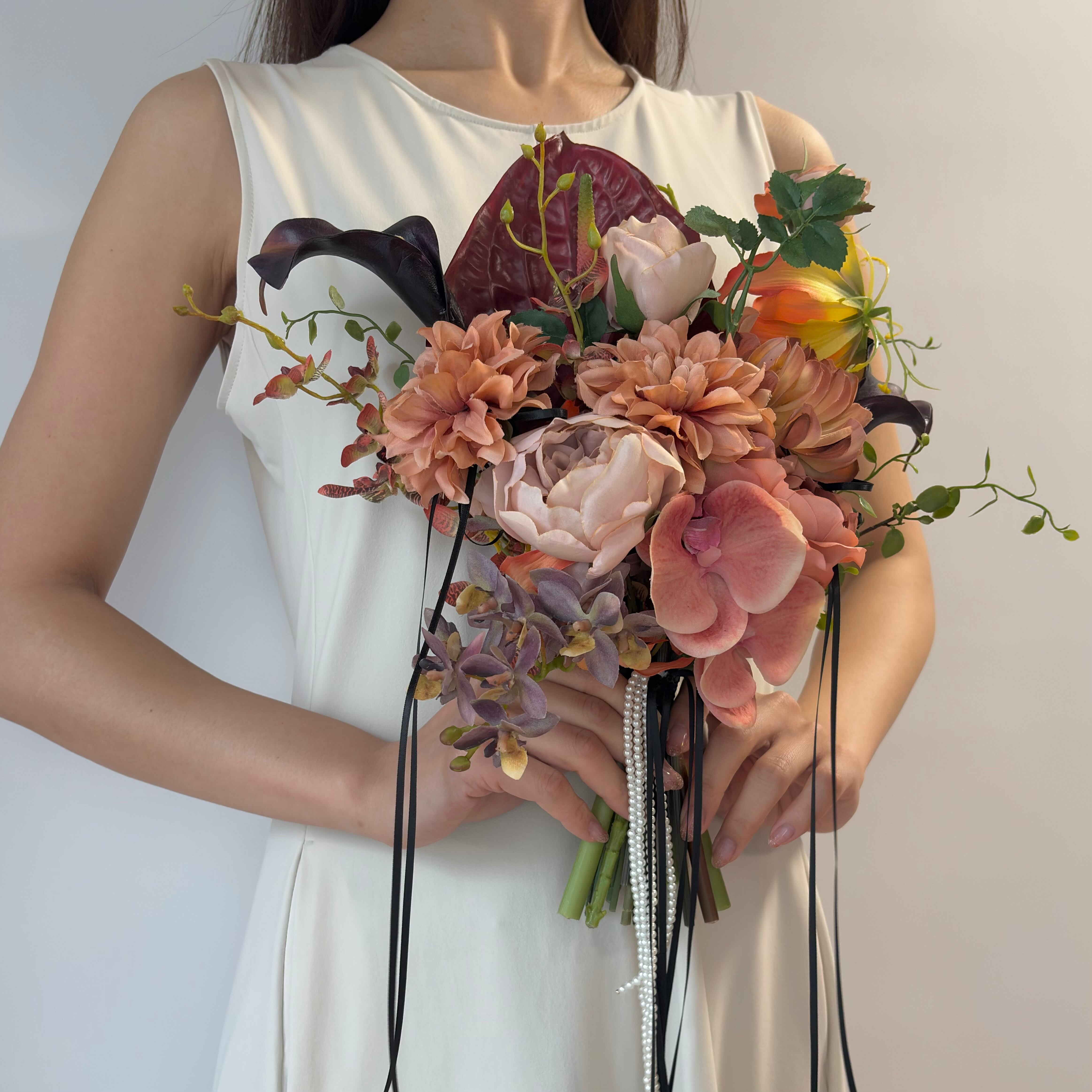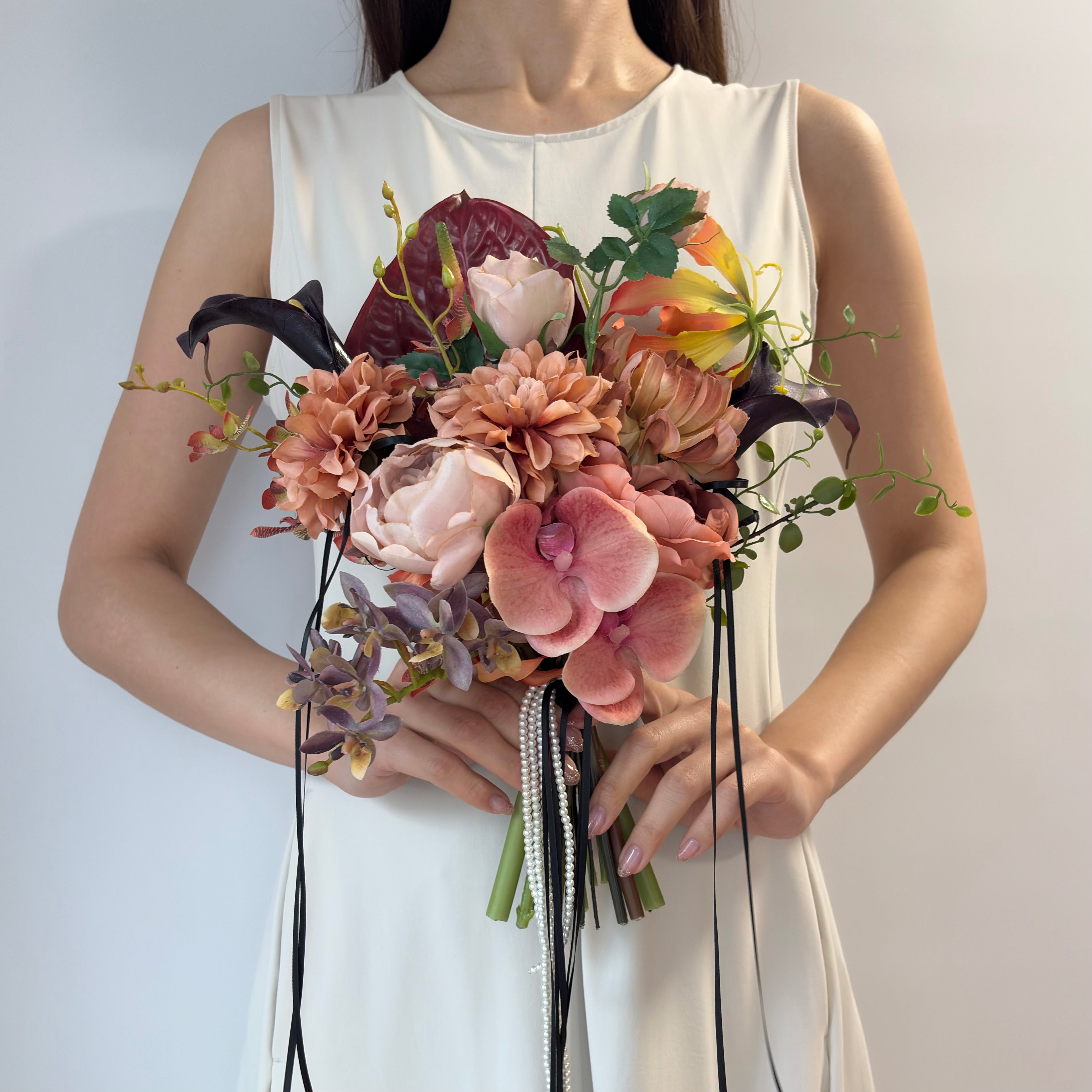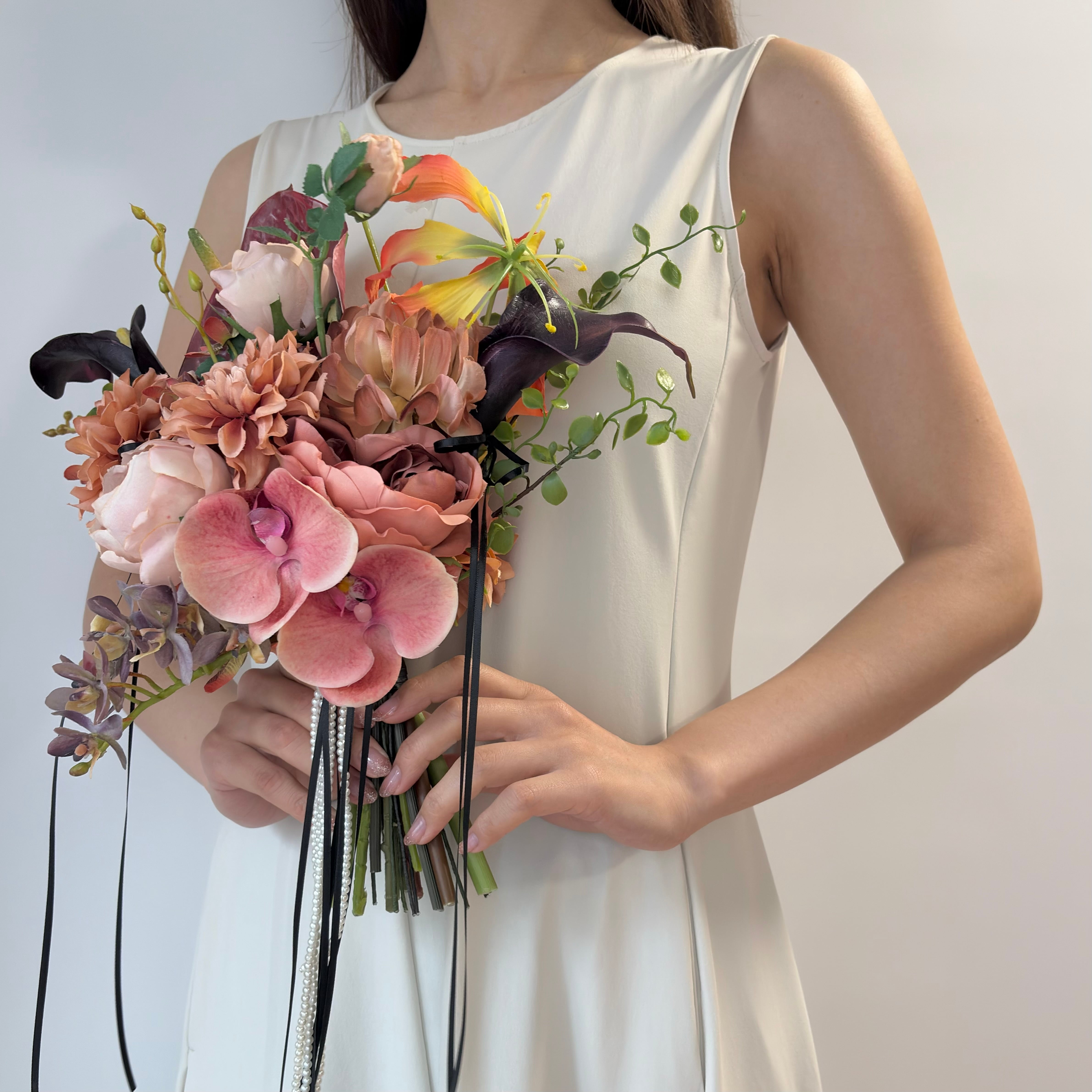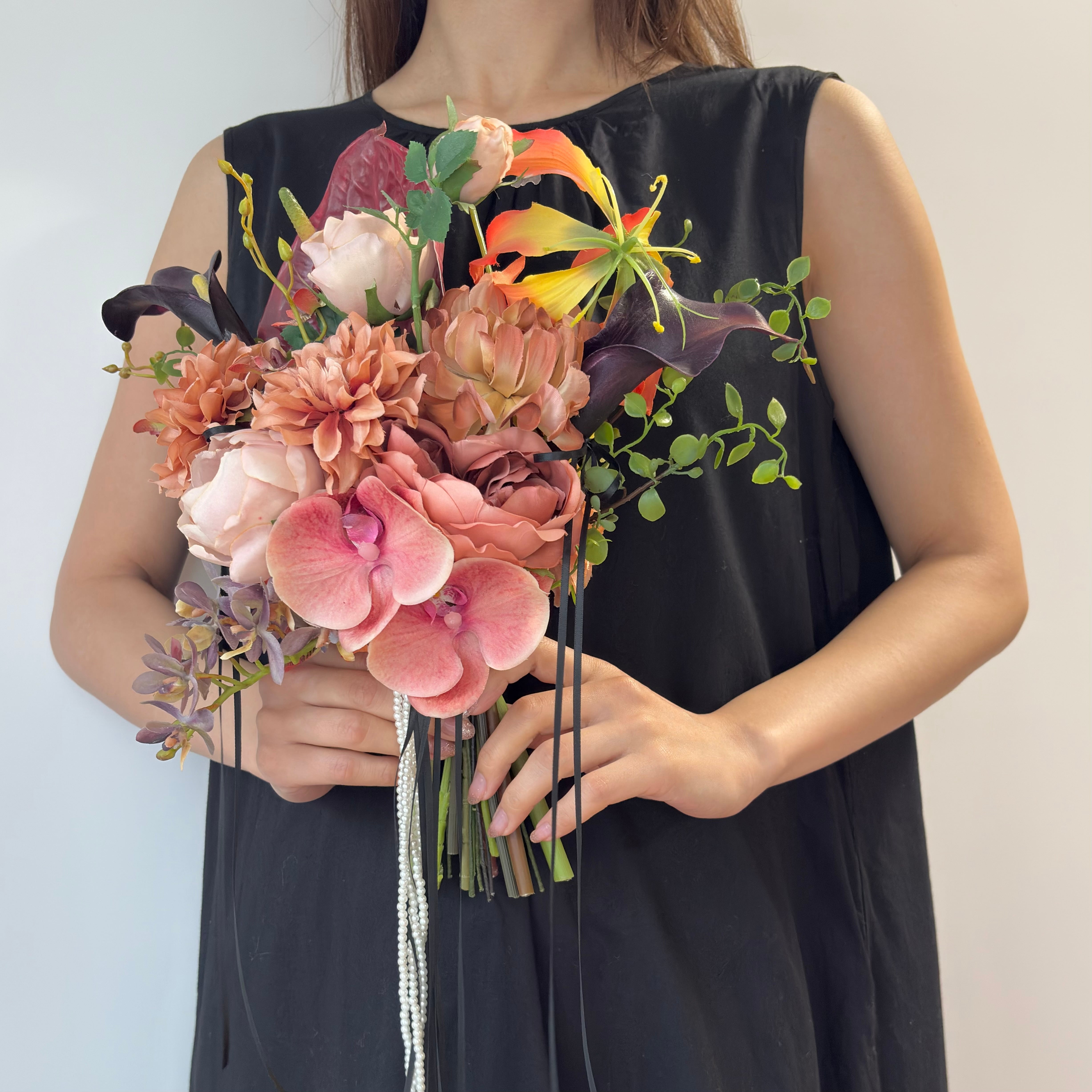 自身の結婚式を機に、花嫁さんがブーケを手に取った瞬間の「可愛い!」というときめきを何よりも大切に、その感動が永遠に続くように作成しております。