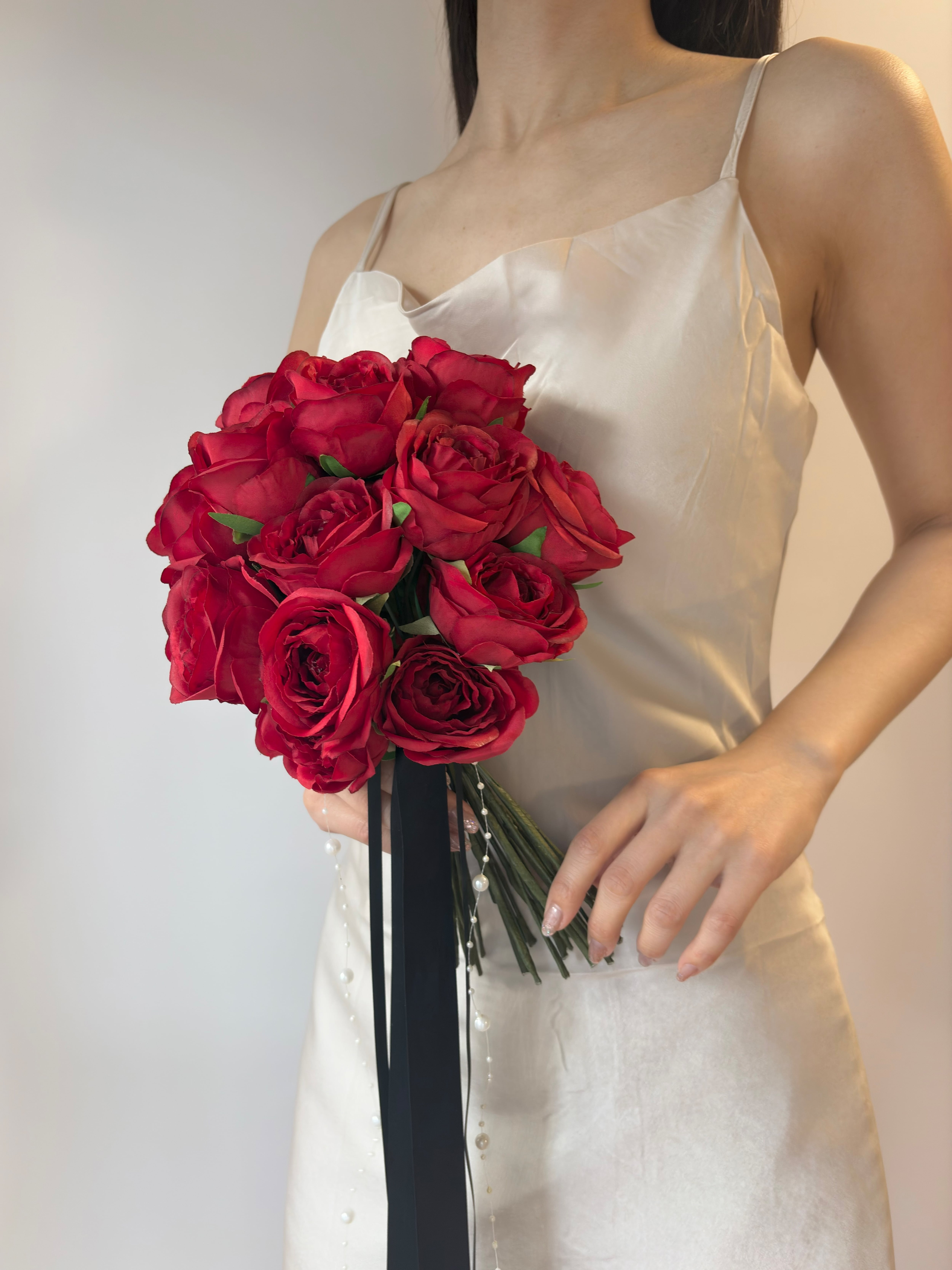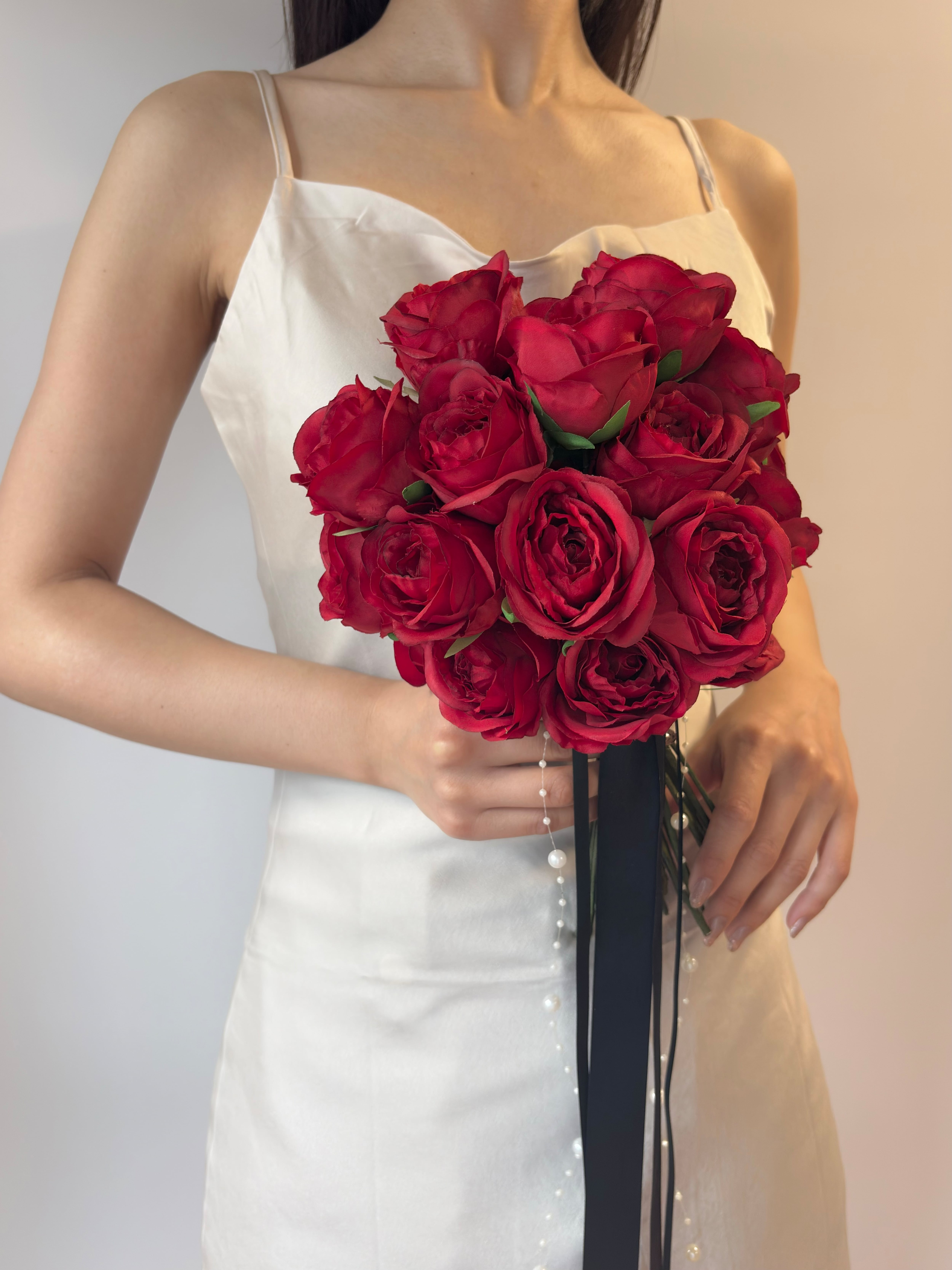 【ブートニア付】レッドローズのウェディングブーケ|アーティシャルフラワー高級造花