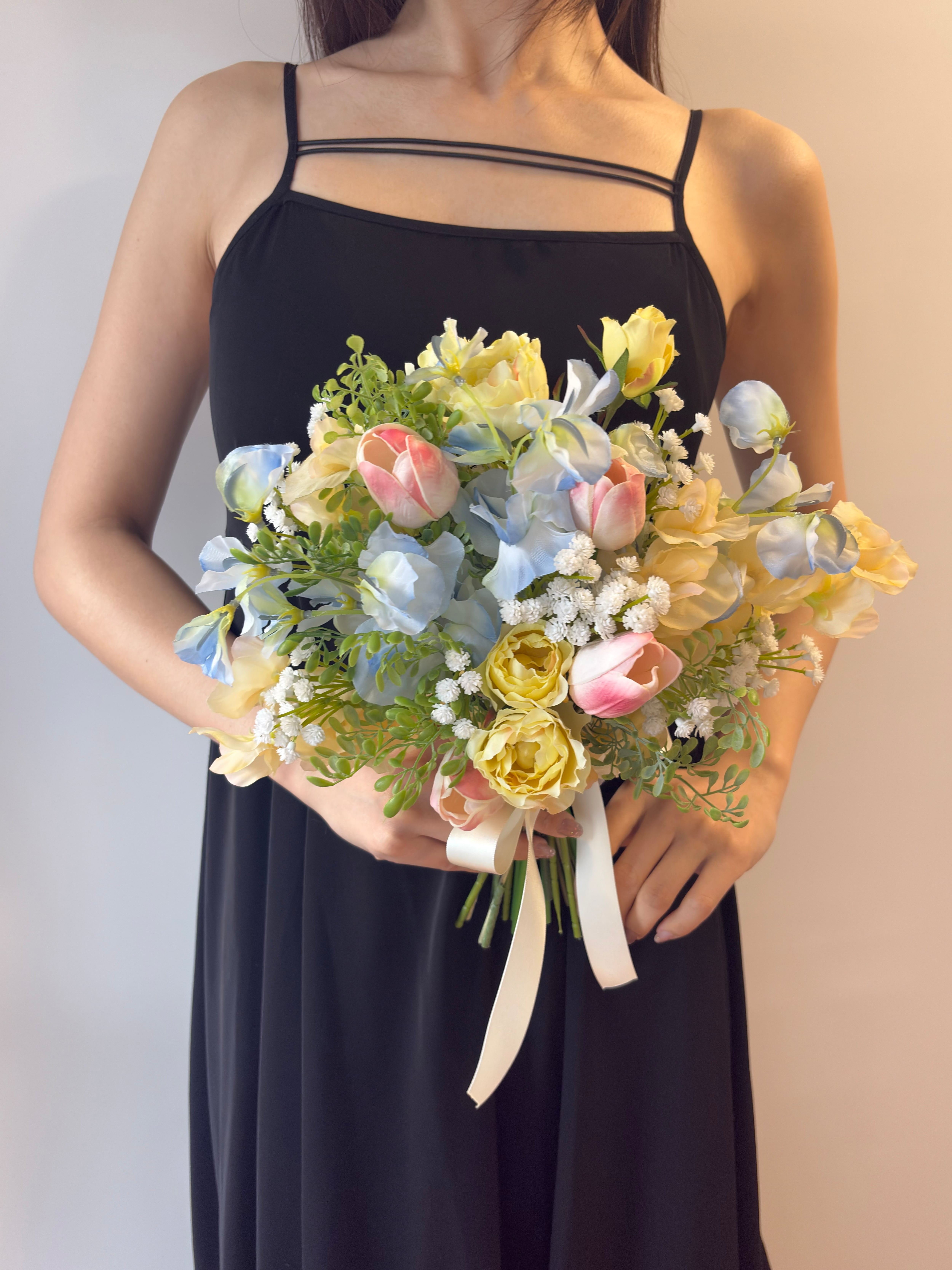 【ブートニア付】お花を摘んだようなウェデングブーケ|アーティシャルフラワー造花