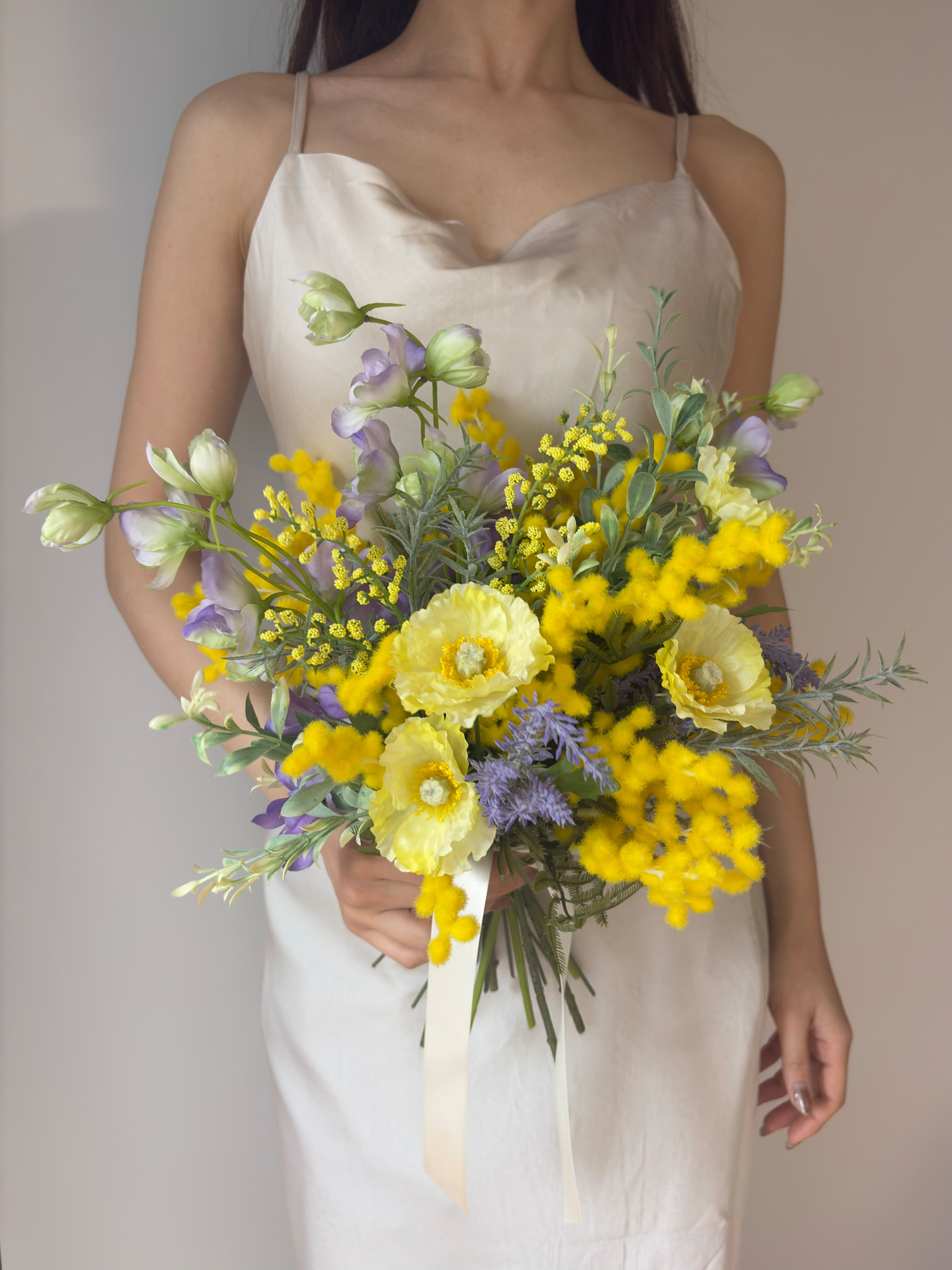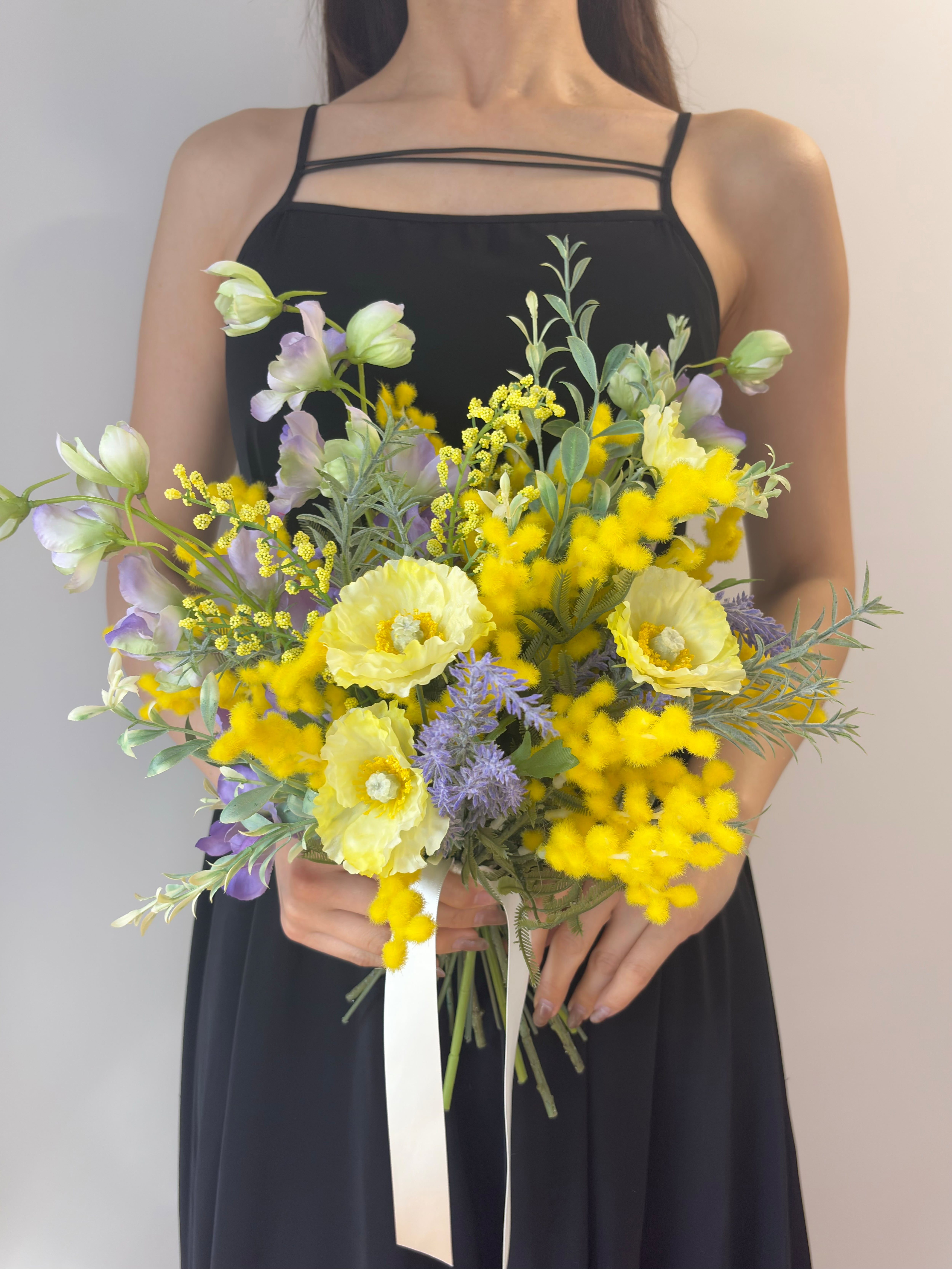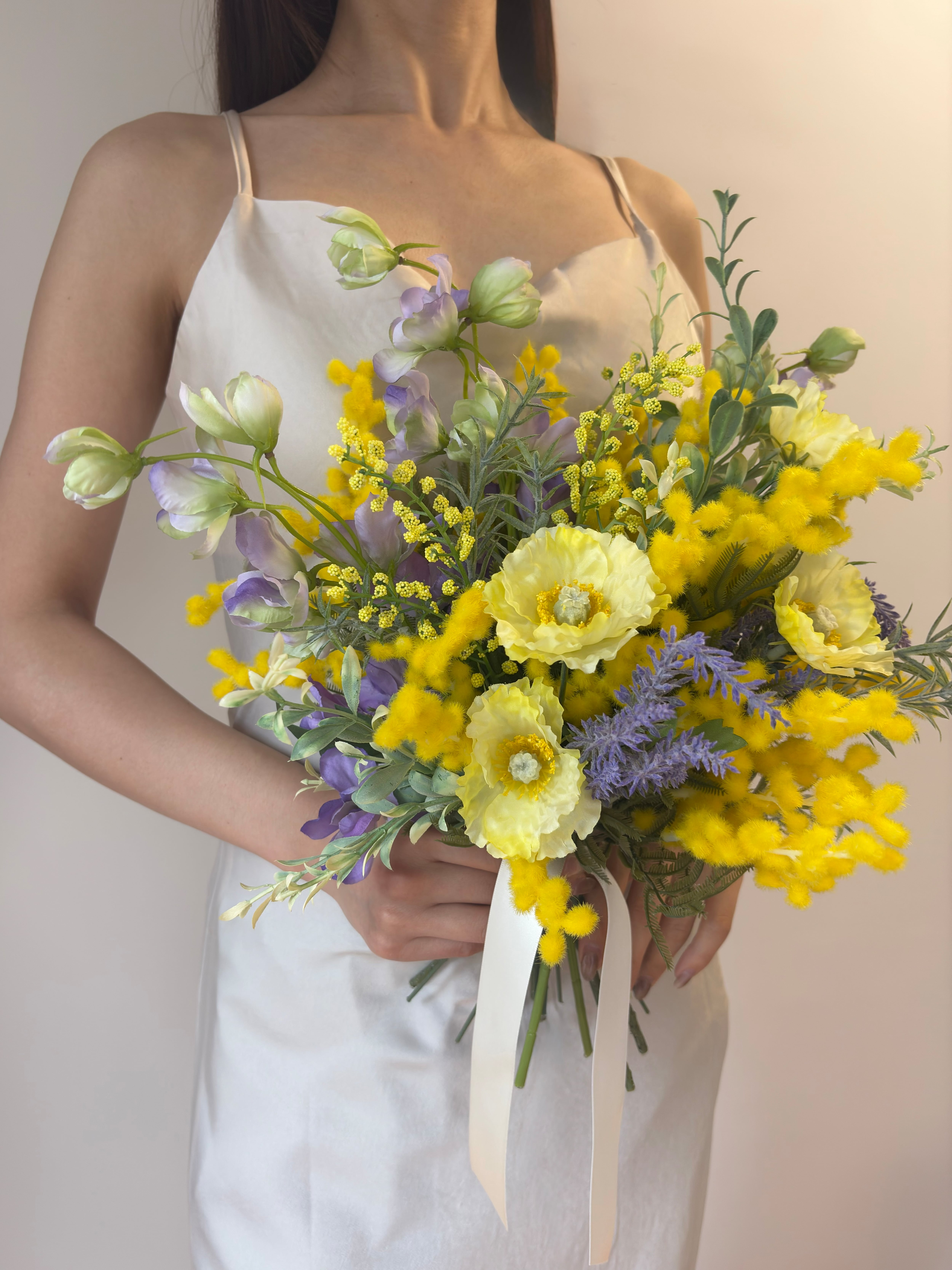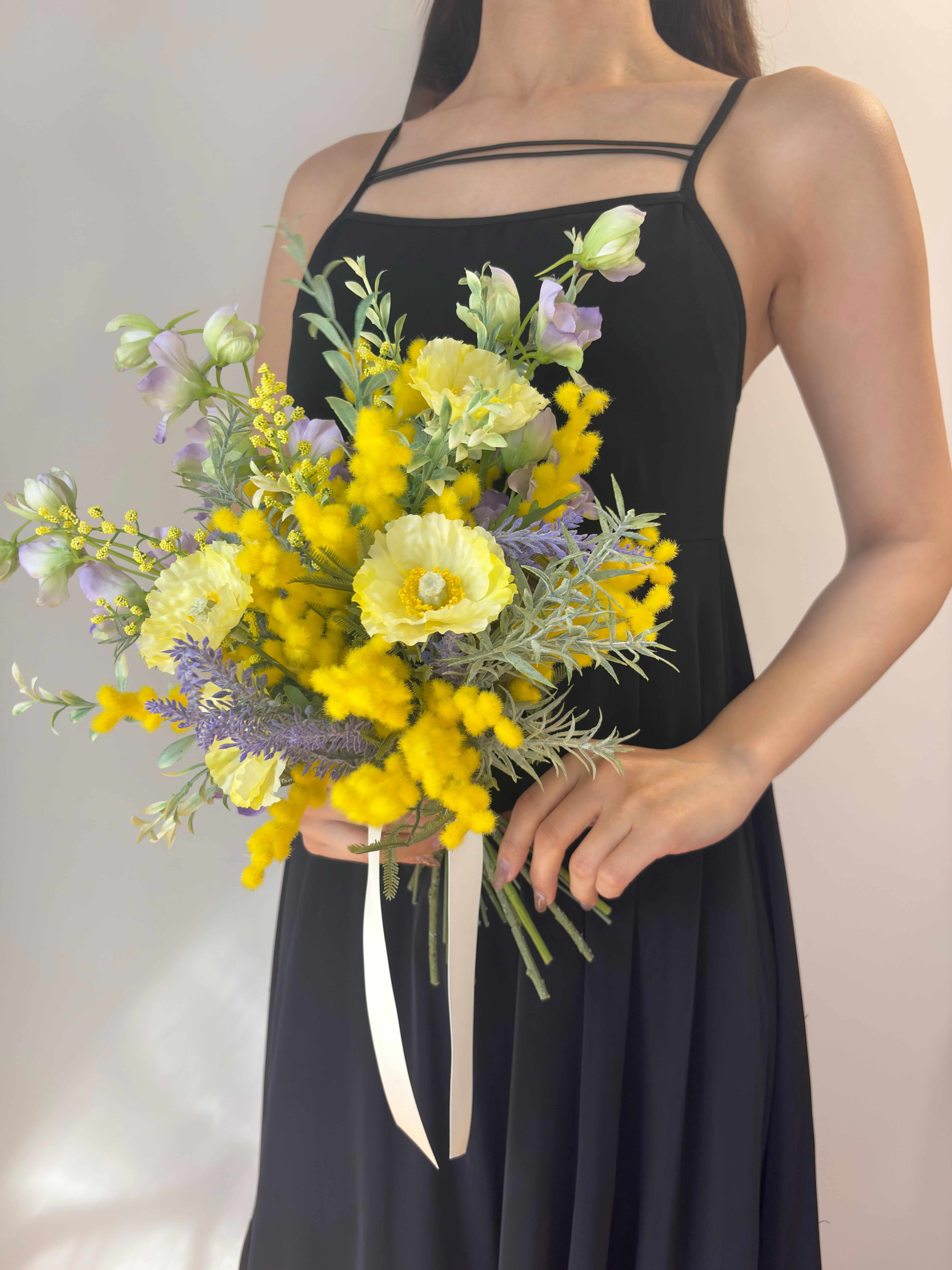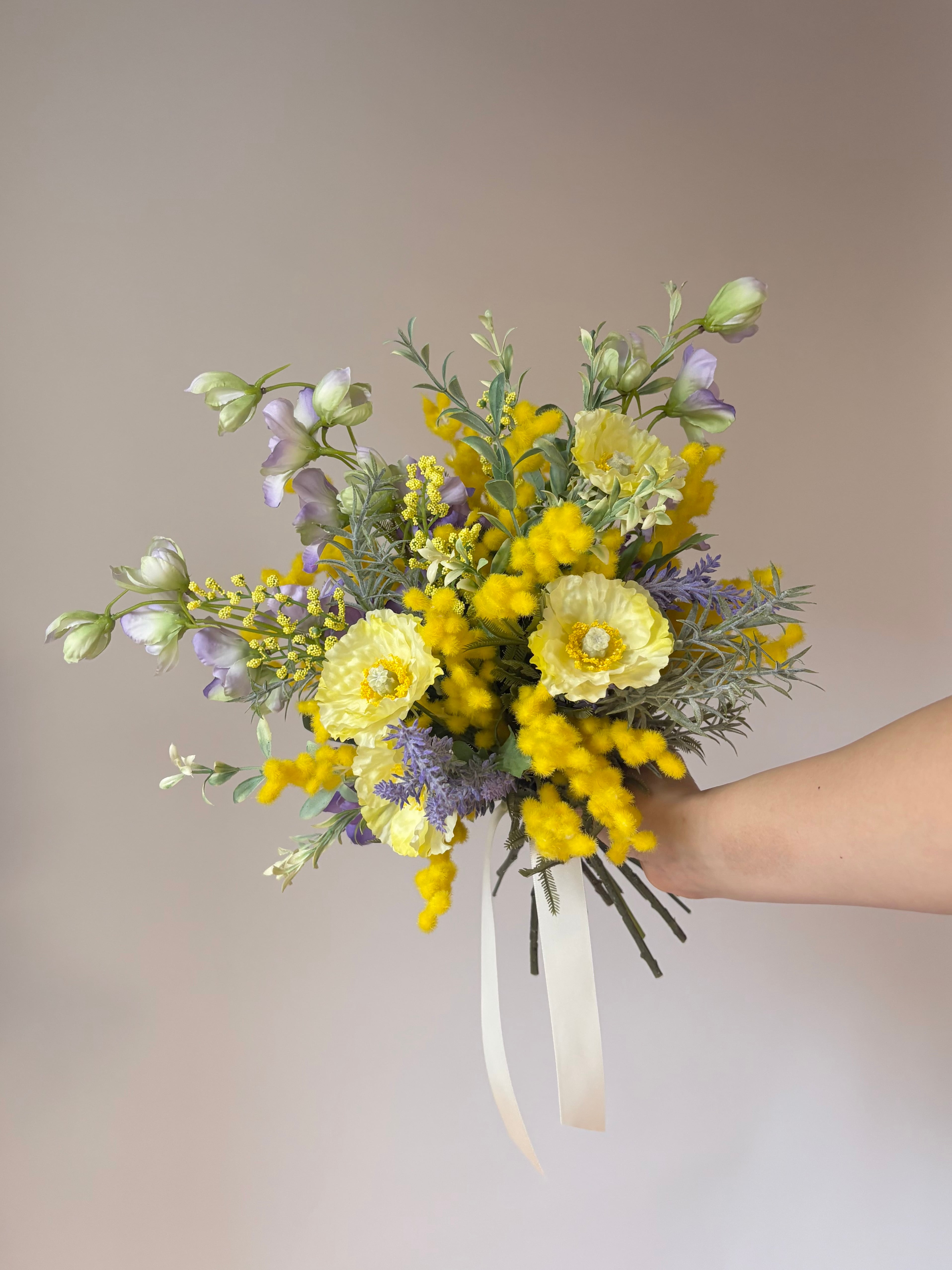 【ブートニア付】ミモザ ウェディングブーケ|春婚 ナチュラル 前撮り 卒業式(造花)