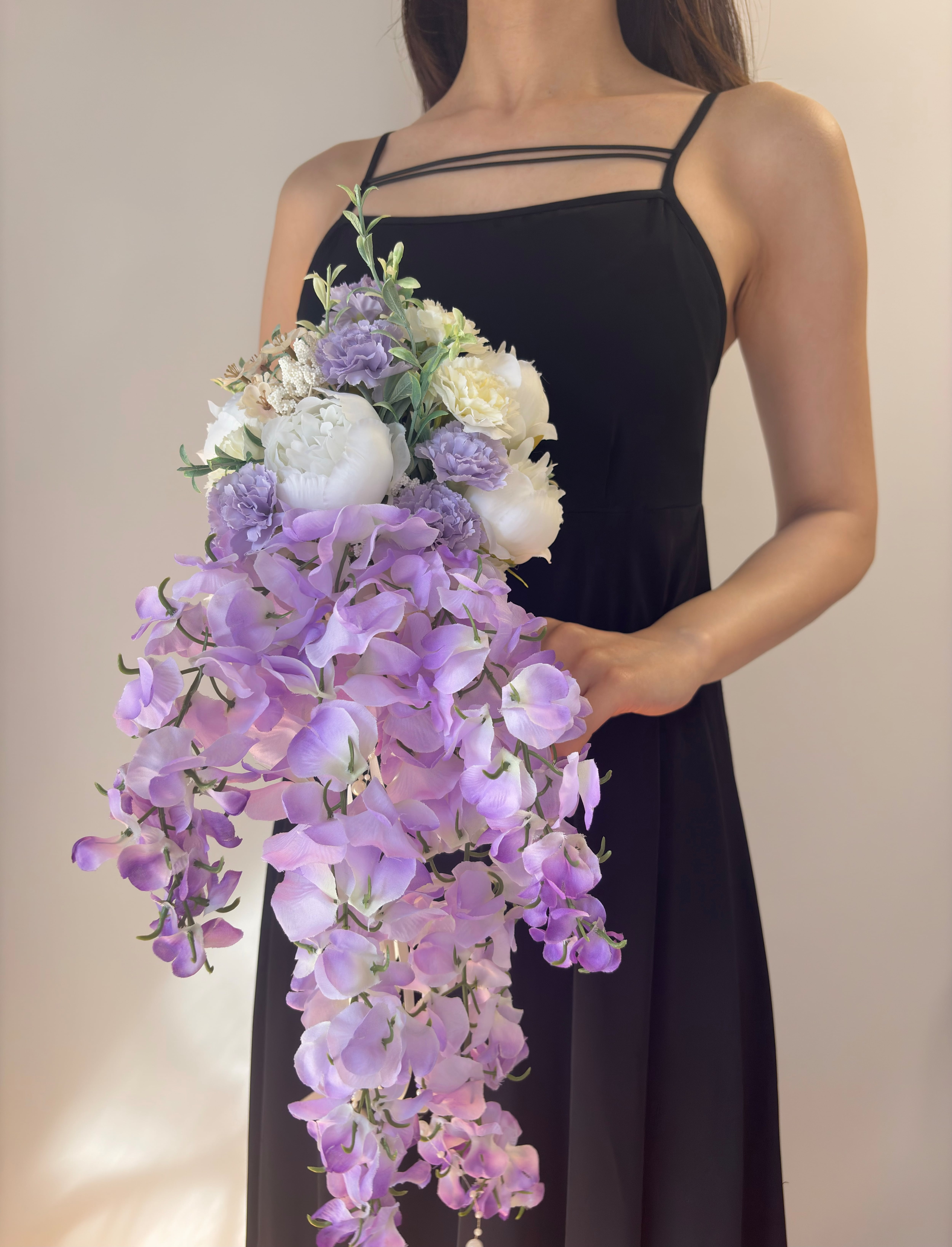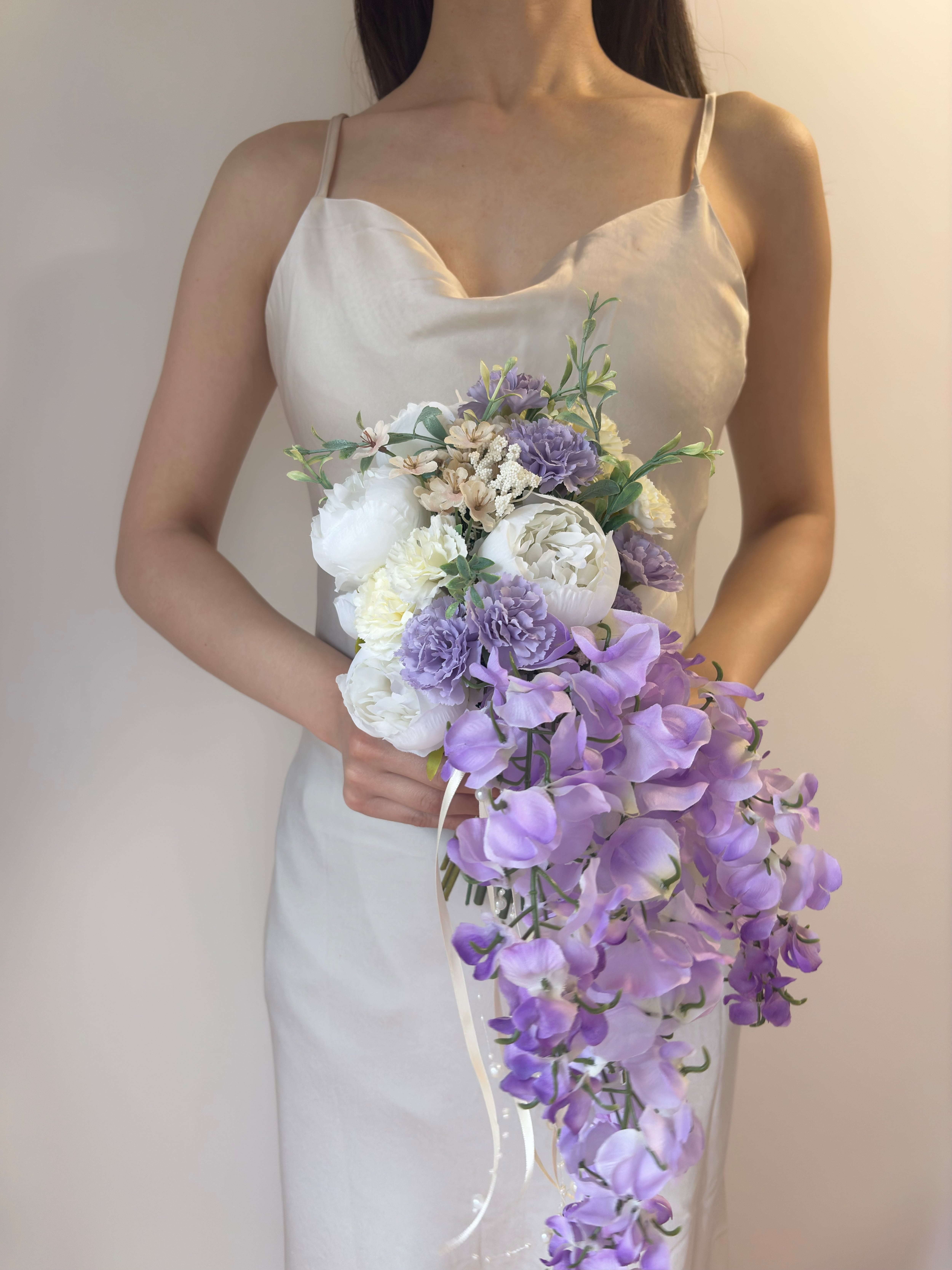 【ブートニア付】ラベンダー キャスケードブーケ|ウェディング 前撮り 卒業式(造花)