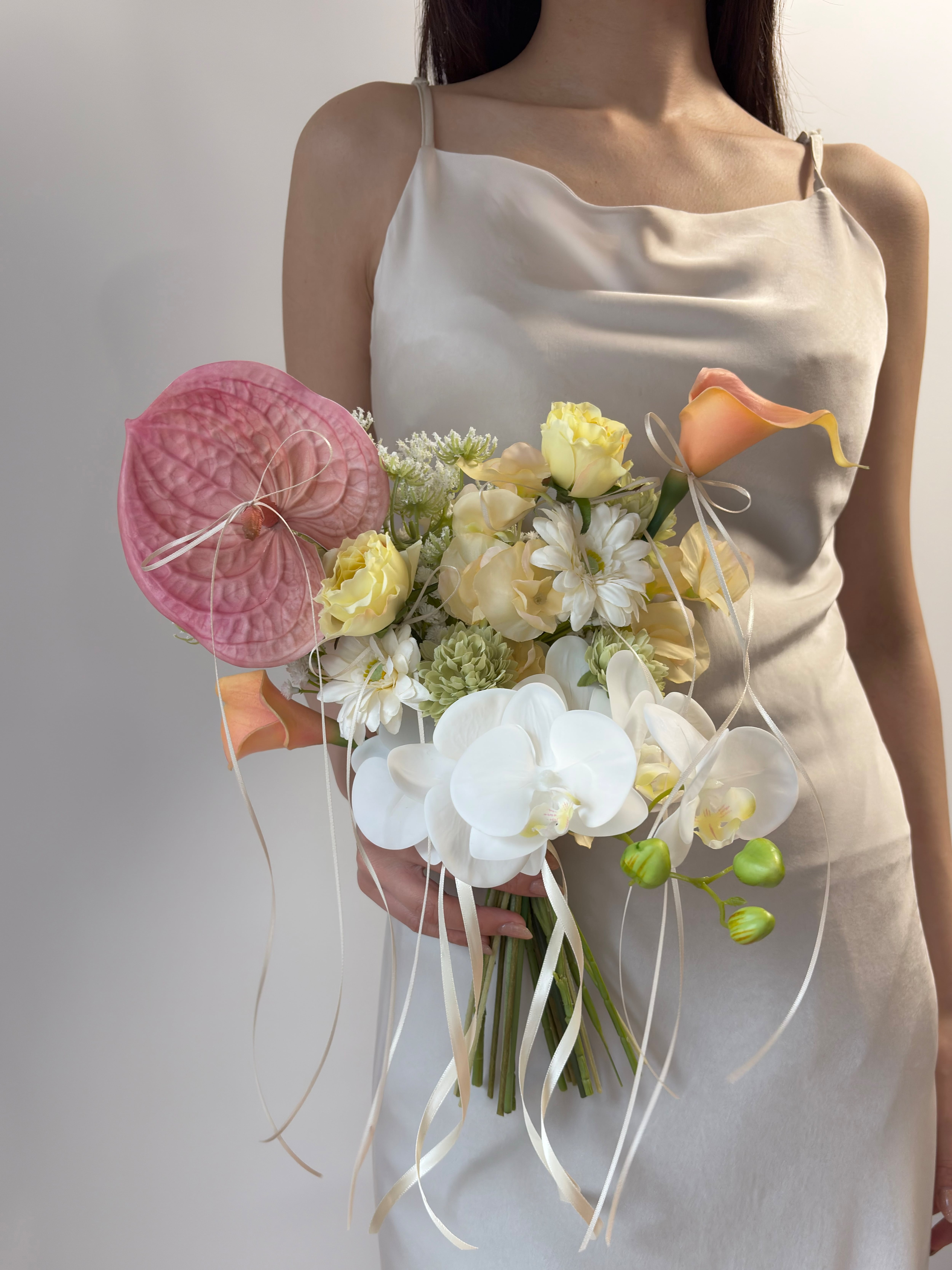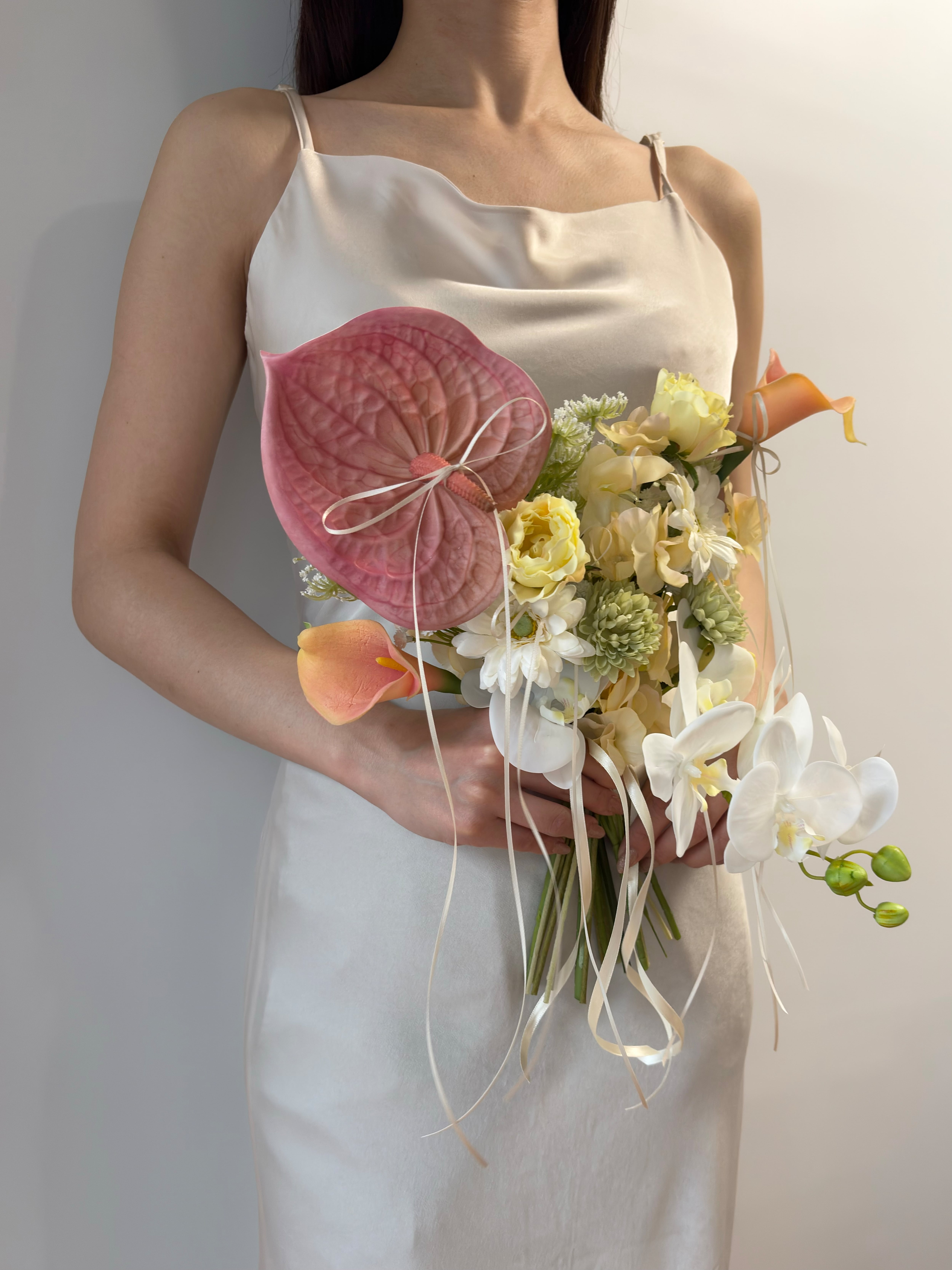 自身の結婚式を機に、花嫁さんがブーケを手に取った瞬間の「可愛い!」というときめきを何よりも大切に、その感動が永遠に続くように作成しております。